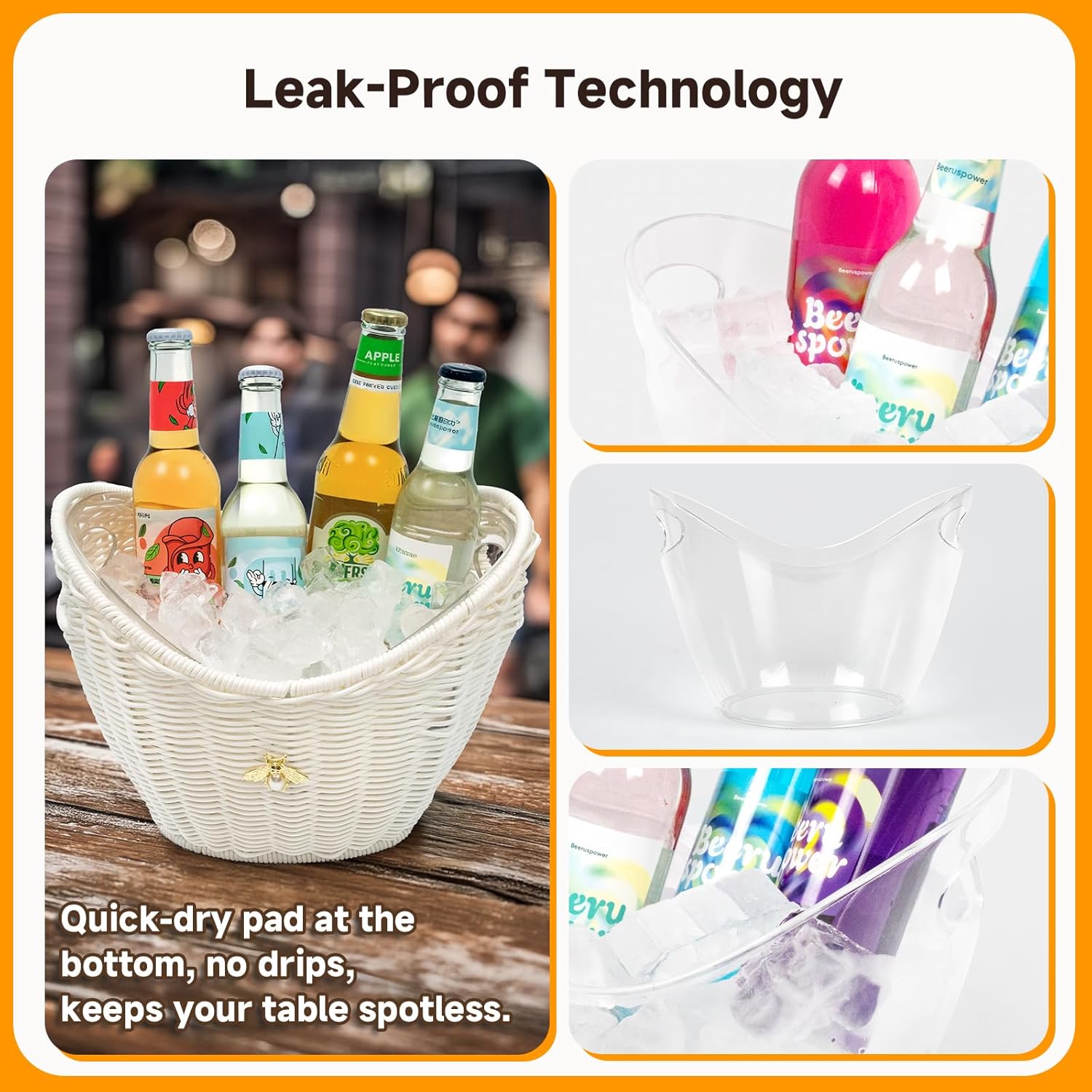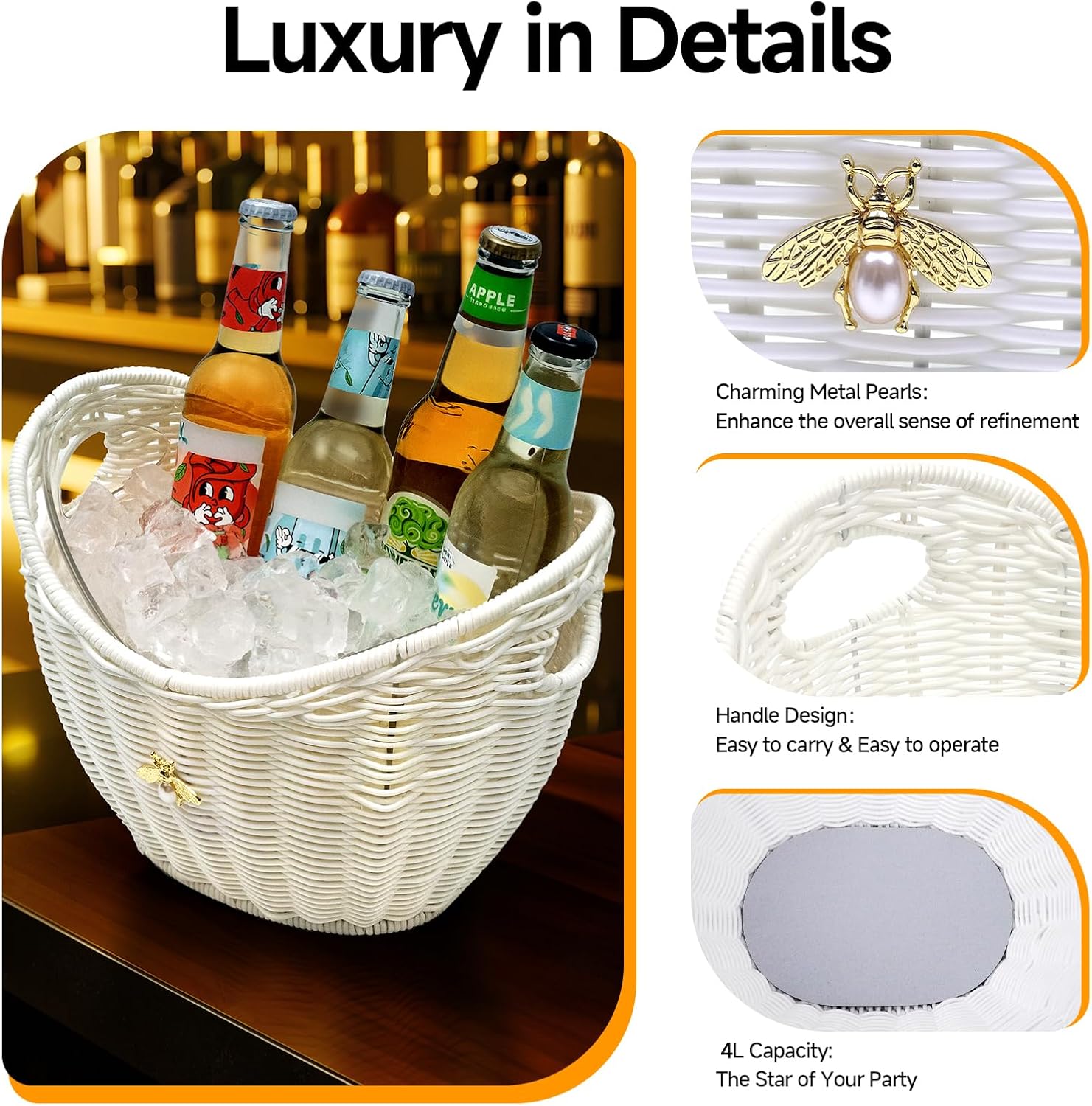 Lexenic Ice Bucket with Handle Hole, Woven and Acrylic Double Layer Basket Design, 4L Champagne Wine Ice Bucket for Cocktail Bar, Parties- Anti Frozen Hands Anti Water Leakage (Plastic-White)