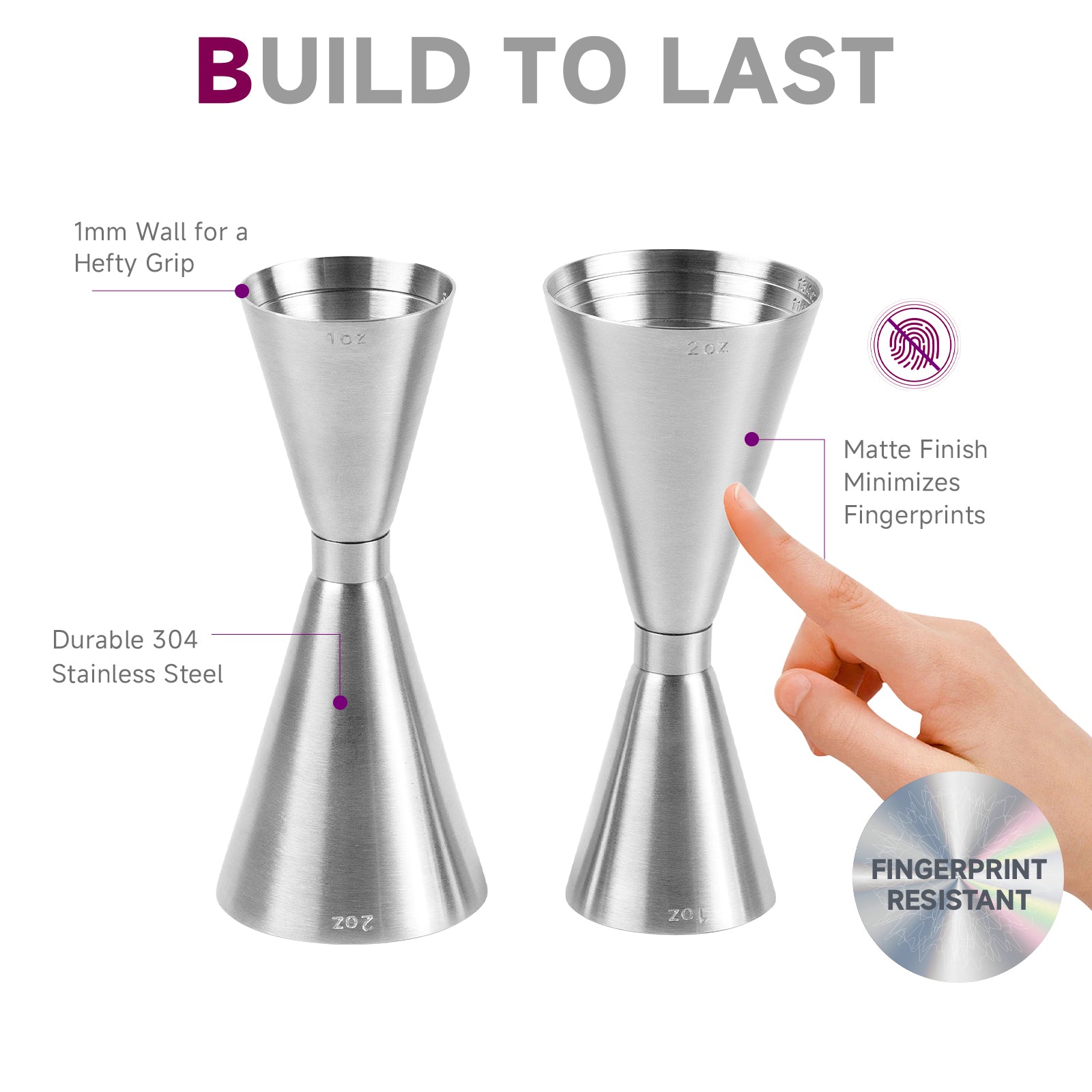 - Stylish & Practical Design: Crafted from premium 304 stainless steel with a matte finish, this cocktail jigger stays looking clean with no easy to leave fingerprinting and smudges while delivering a refined, vintage-inspired look.