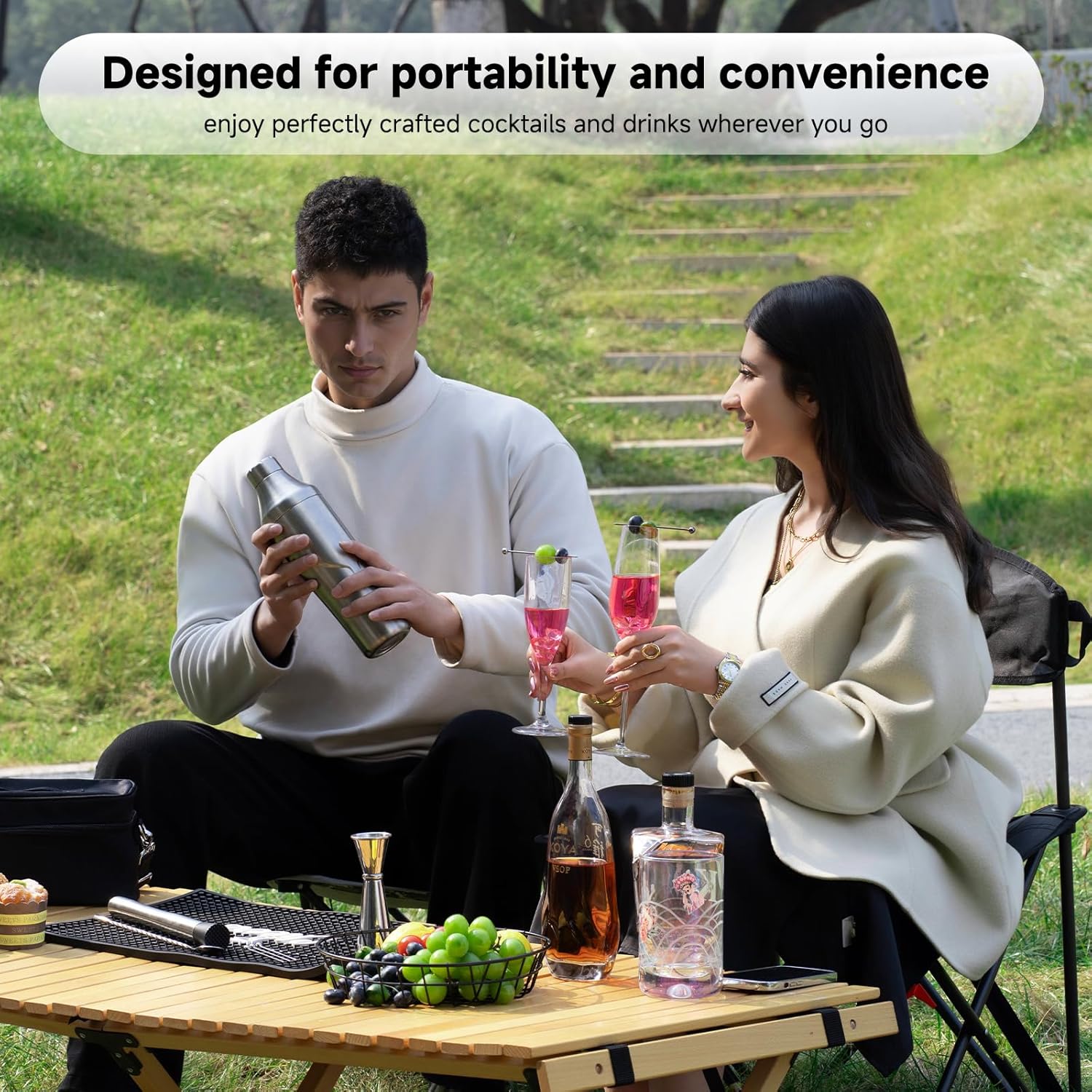 - Convenient & Portable: Comes with a practical carrying bag for the full set and a separate bag for the shaker, making it easy to take your cocktail-making skills anywhere—ideal for travel, parties, picnics, or outdoor barbecues.