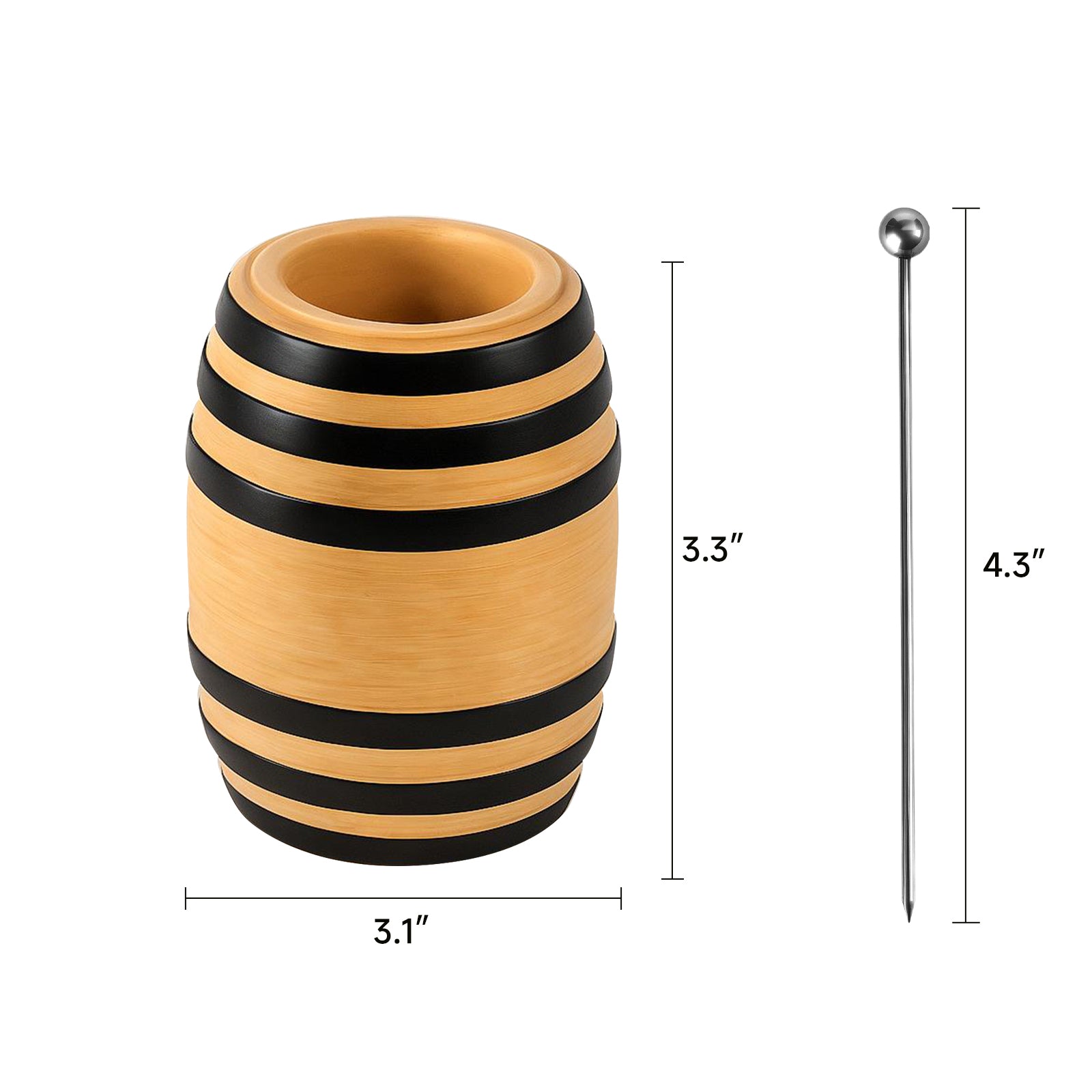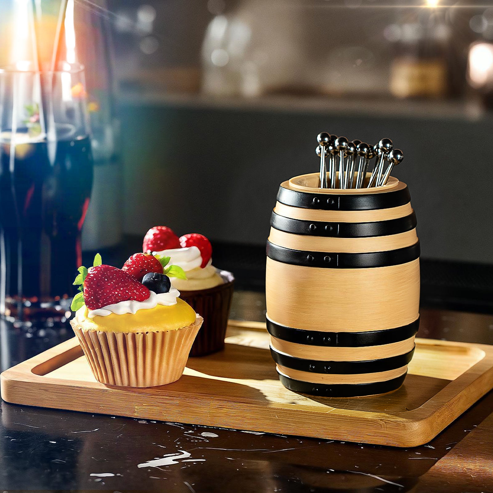 - Barrel-Inspired Design: With its classic barrel inspired shape, this cocktail picks holder mixes old-fashioned style with a contemporary look. It’s not only decorating your bar countertop but also practical for daily use—easy to grip, stable to place. Equipped with a food-grade silicone liner, it ensures safe and hygienic storage for your cocktail picks.