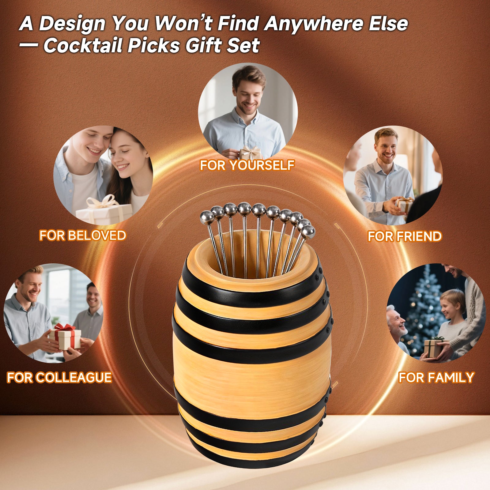 - Don’t know what to gift?: With its unique Barrel inspired design and practical use, this cocktail picks set makes a thoughtful gift for cocktail lovers. Perfect for Christmas, housewarming parties, birthdays, Father's Day, Thanksgiving, weddings, or as a host gift. A great choice for your partner, friends, family, boyfriend, girlfriend, or parents.